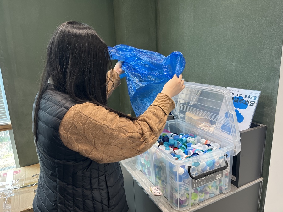 버려지는 병뚜껑을 지역주민들과 한마음으로 모아