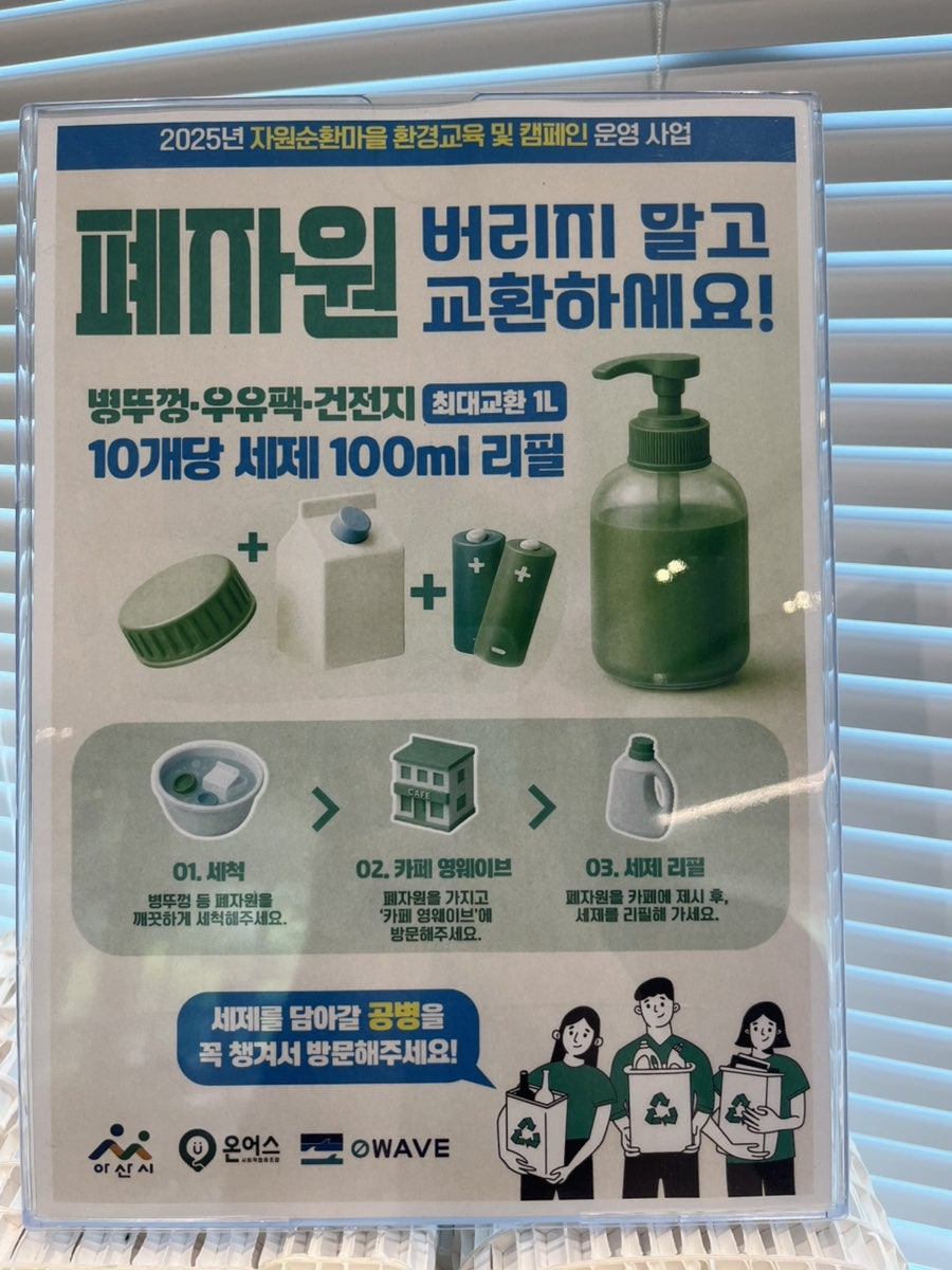 자원순환을 위해 카페 영웨이브에 전달해드렸습니다.